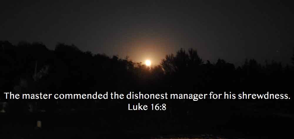 Previously, Jesus had given to the religious leaders of his day the parable of the prodigal son. That parable described their behaviour as they saw the poor and the sinners respond to Jesus’ ministry and repent. In that parable they were represented by the older son who had not wasted his inheritance. In this parable of the unjust steward, the religious leaders of the day are compared to a steward who did not manage his responsibilities properly. The dishonesty of the steward is not the point of comparison. The shrewedness of the steward is the point of comparison for the religious leaders of Jesus’ day.