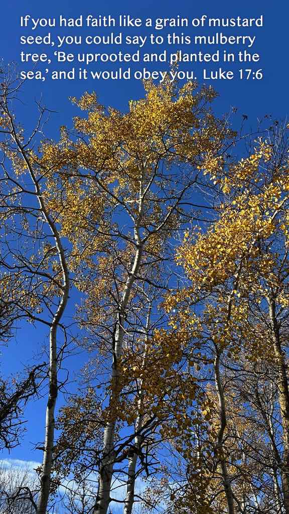 The apostles said to the Lord, “Increase our faith!” And the Lord said, “If you had faith like a grain of mustard seed, you could say to this mulberry tree, ‘Be uprooted and planted in the sea,’ and it would obey you. “Will any one of you who has a servant plowing or keeping sheep say to him when he has come in from the field, ‘Come at once and recline at table’? Will he not rather say to him, ‘Prepare supper for me, and dress properly, and serve me while I eat and drink, and afterward you will eat and drink’? Does he thank the servant because he did what was commanded? So you also, when you have done all that you were commanded, say, ‘We are unworthy servants; we have only done what was our duty.’ ”