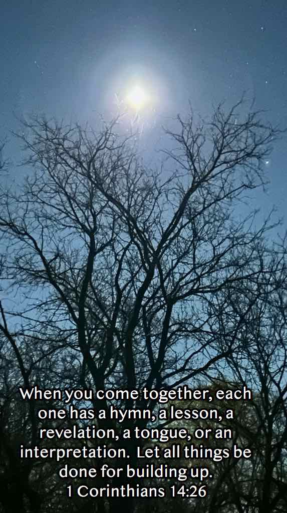 Today we cancelled our regular study in order to join a Canada-wide online meeting. We discussed the above verse, in particular, edifying [building up] the brethren.