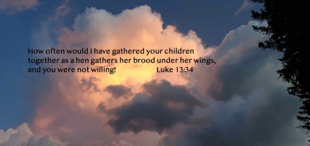 At that very hour some Pharisees came and said to him, “Get away from here, for Herod wants to kill you.” And he said to them, “Go and tell that fox, ‘Behold, I cast out demons and perform cures today and tomorrow, and the third day I finish my course. Nevertheless, I must go on my way today and tomorrow and the day following, for it cannot be that a prophet should perish away from Jerusalem.’ O Jerusalem, Jerusalem, the city that kills the prophets and stones those who are sent to it! How often would I have gathered your children together as a hen gathers her brood under her wings, and you were not willing! Behold, your house is forsaken. And I tell you, you will not see me until you say, ‘Blessed is he who comes in the name of the Lord!’ ”